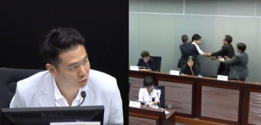 泛民議員范國威在發(fā)言結(jié)束后,故意點名邀請"市民"張倩盈,用他剩余的發(fā)言時間再度發(fā)言。主持會議的政制事務(wù)委員會主席廖長江表明,發(fā)言時間的分配應(yīng)由主席決定,而他剛才已裁決公眾發(fā)言環(huán)節(jié)完結(jié)。范國威仍不依不饒,但廖長江反復(fù)強調(diào),不能任意請個別人士再進行補充,否則會造成不公。眼見獲得反對派"群星拱照"的機會正在流失,張倩盈立即從座位起身,自顧自地發(fā)言,范國威則繼續(xù)助攻,在座位上叫囂。